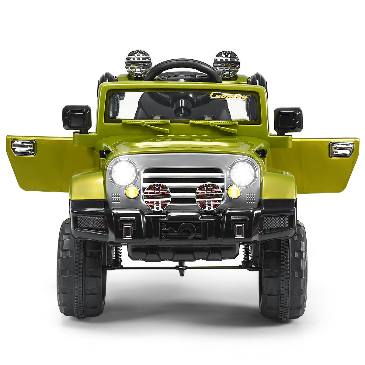 The electric vehicle is powered by a 12V battery-powered motor, making it a fun driving experience for children. A storage box in the back is handy for toys, snacks and other sundries. The Jeep Kid Ride can be manually driven by your child or controlled by you using the provided 2.4GHz remote. Lockable double doors and seat belts help foster safety awareness in children. Slow start function and spring suspension system can effectively avoid the danger of sudden change of speed.Color:Green