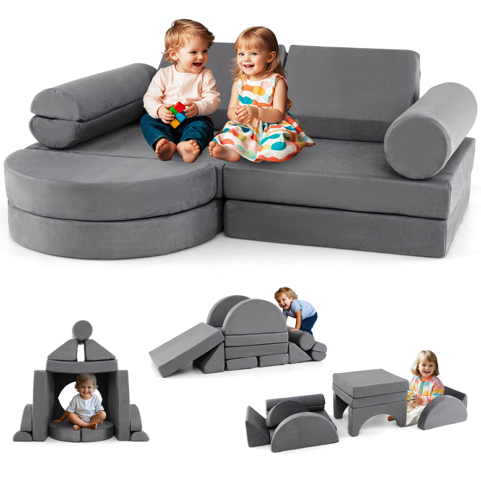 Infans 13 PCS Modular Kids Play Couch Versatile Toddler Sectional Sofa Set Grey