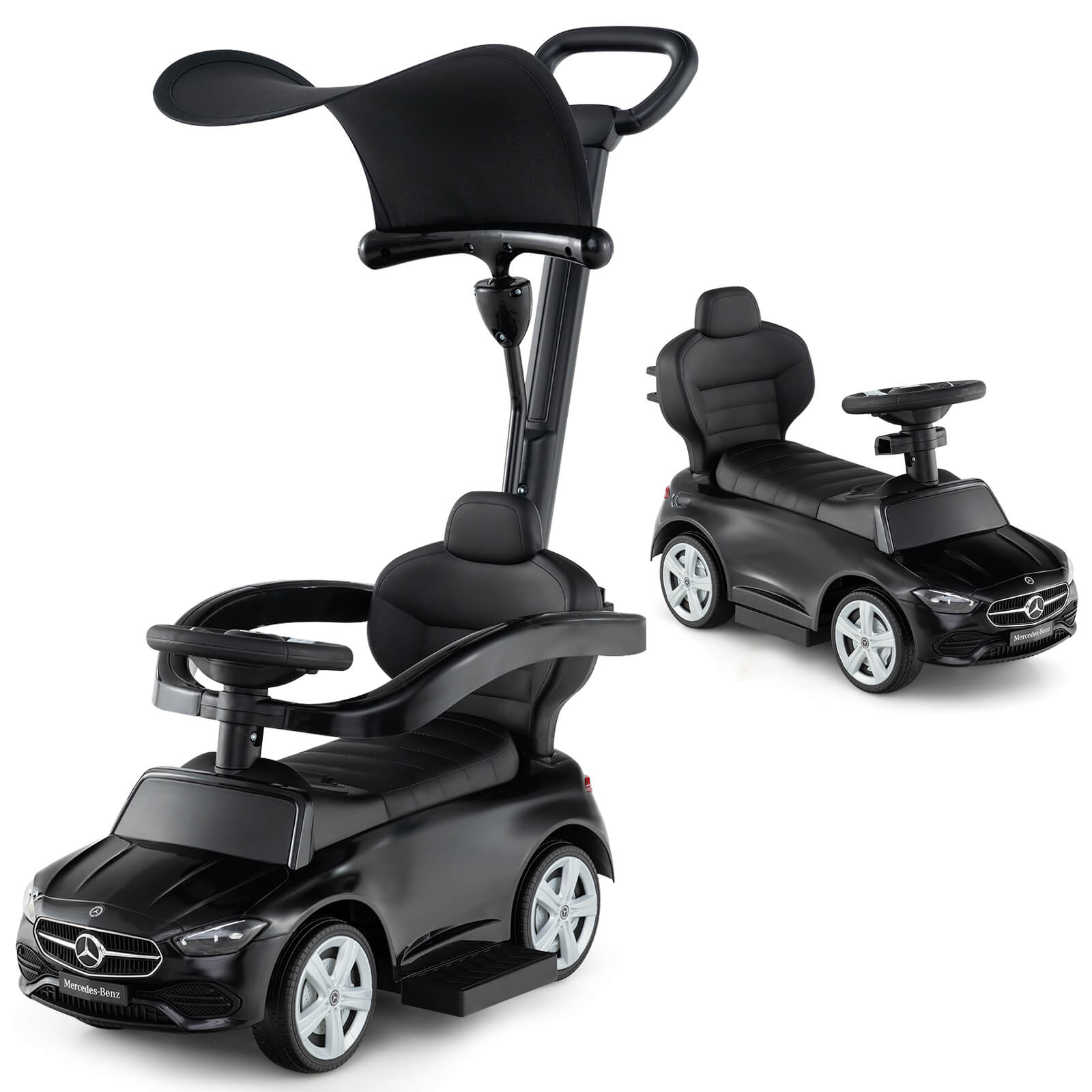 Designed to accompany your children as they grow up, this ride car can be transformed from a stroller to a walker or scooter, ensuring years of enjoyable use. An interactive steering wheel with sound provides a realistic driving experience. Strong guardrails, secure handlebars and hard-wearing wheels ensure a high level of safety. Extra under-seat storage allows your child to drive with cute toys, blocks or treats. In addition, the shield protects children from annoying sunlight and can be easily removed. All in all, this ride car is the perfect gift for adventurous toddlers, promoting their development through fun and stylish exploration.Color: Black
