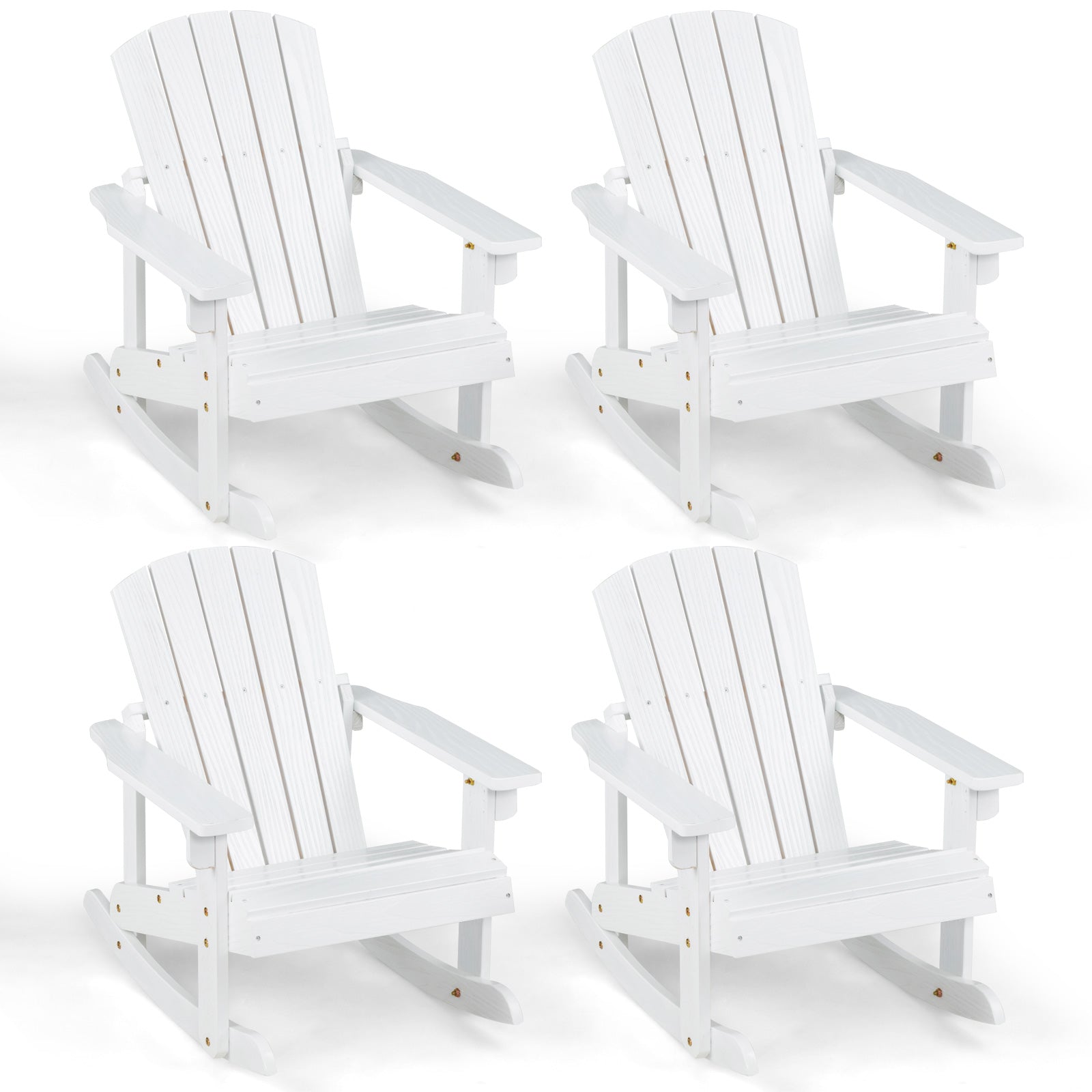 Infans 4PCS Kid Adirondack Rocking Chair Outdoor Solid Wood Slatted seat Backrest White