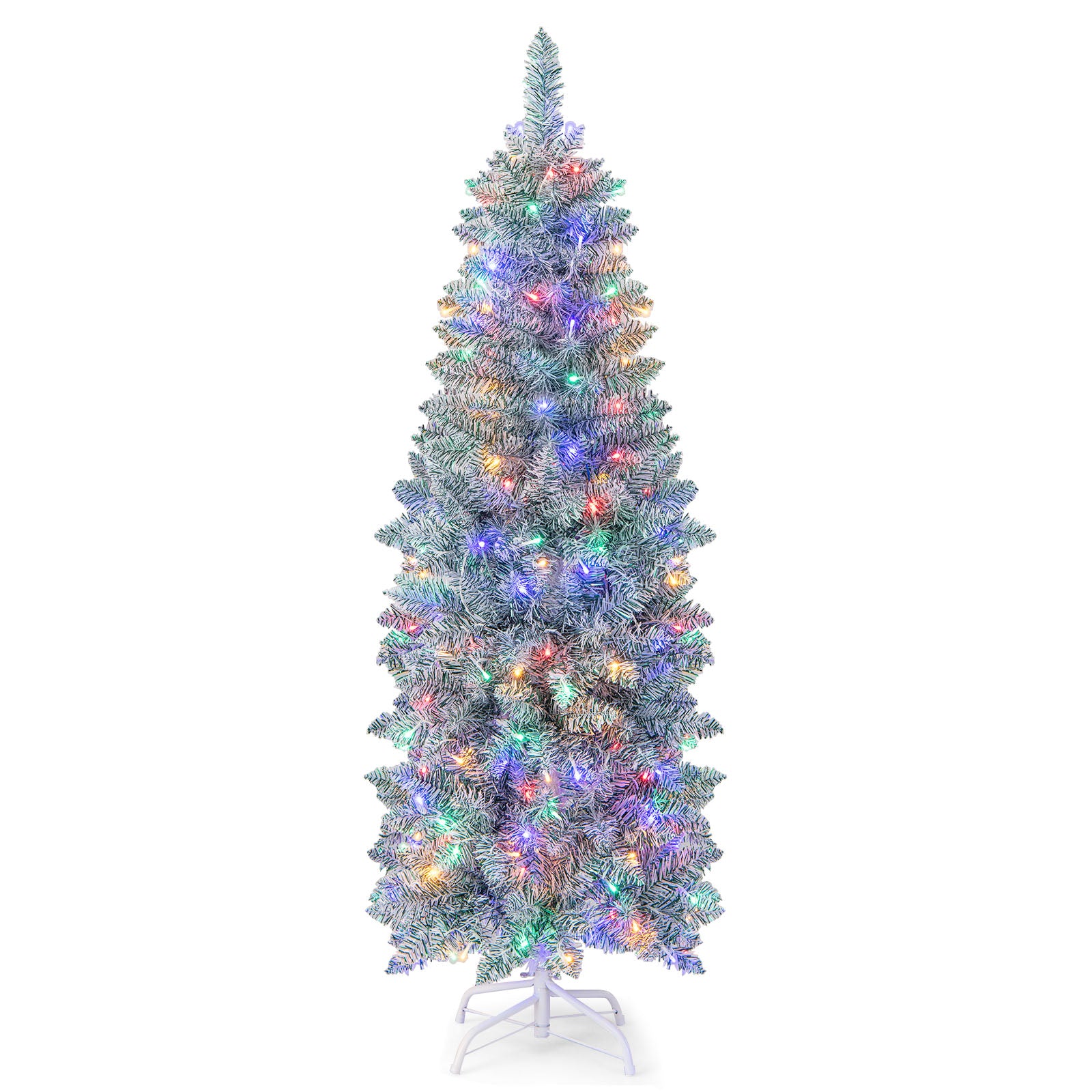 Infans 5 FT Pre-lit Christmas Tree Hinged Pencil Decoration 190 Multi-Color LED Lights