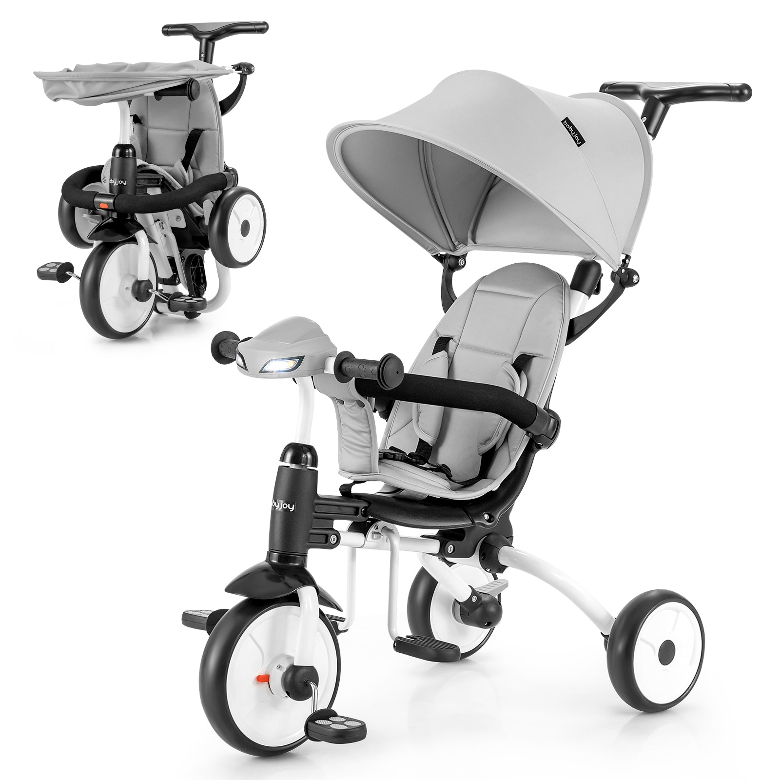 Infans 6-in-1 Folding Baby Tricycle Toddler Bike Stroller W/ Adjustable Handle Gray