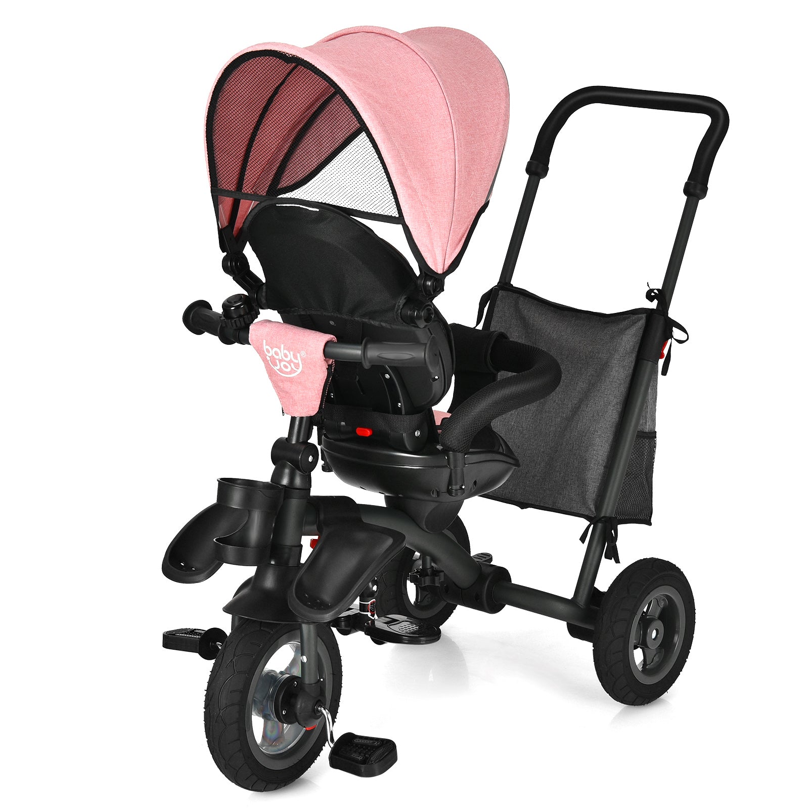 Infans 7-In-1 Kids Baby Tricycle Folding Steer Stroller w/ Rotatable Seat Pink