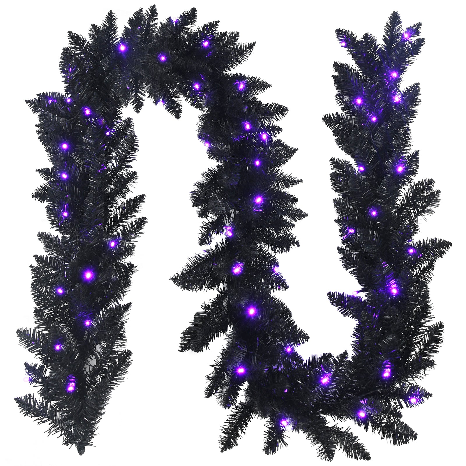 Infans 9ft Pre-lit Christmas Halloween Garland Black w/ 50 Purple LED Lights