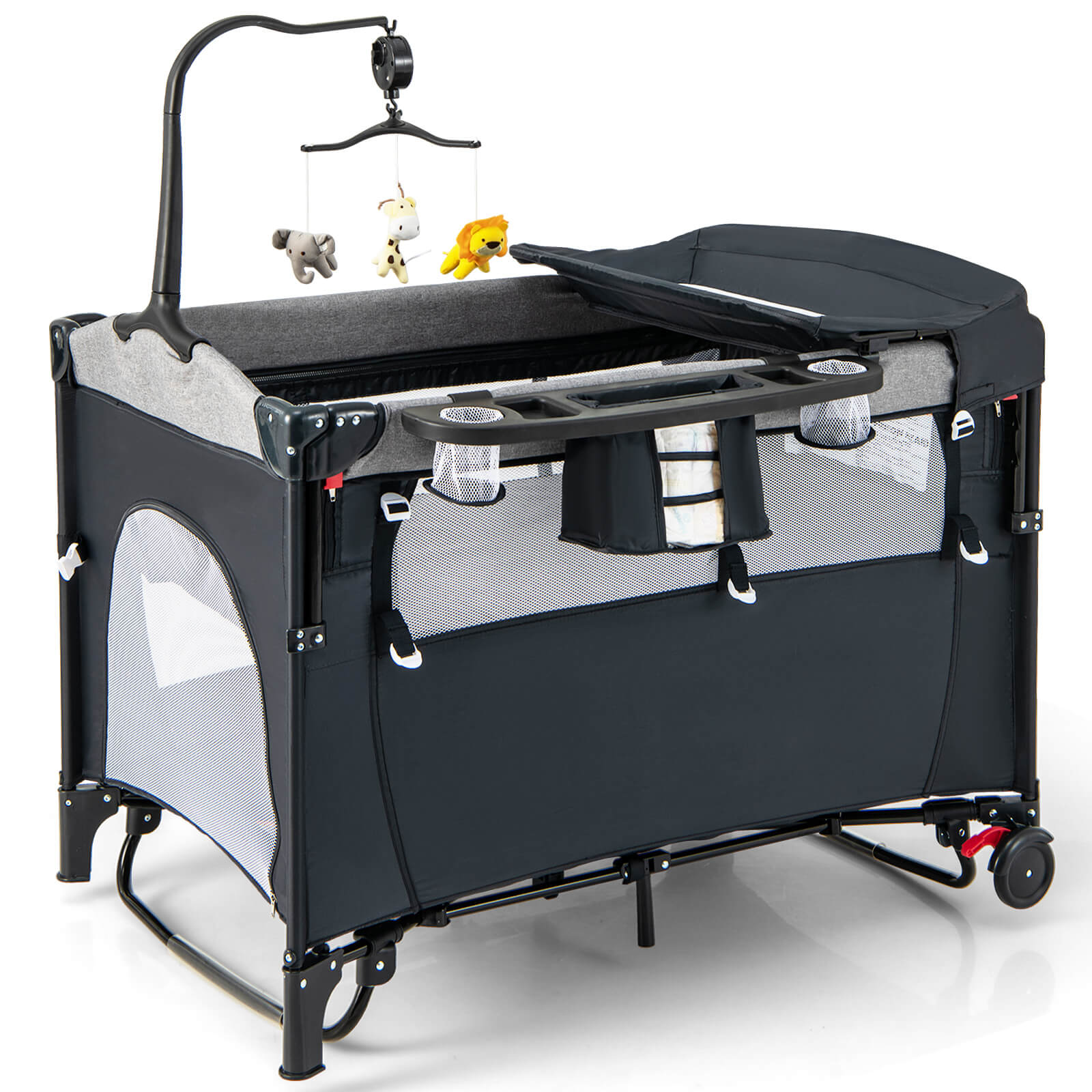 The crib is versatile and can be used as a changing table, cradle, crib and activity center. The mesh not only provides better air permeability, but also gives parents the freedom to observe their baby. In addition, the comfortable mattress made by cationic cloth has super wear resistance, water absorption and anticorrosion. In addition, you can adjust the handrail to 4 heights depending on the bed height. Made of high quality iron pipe, the crib with 7 point support has a stable structure.Color: Black
