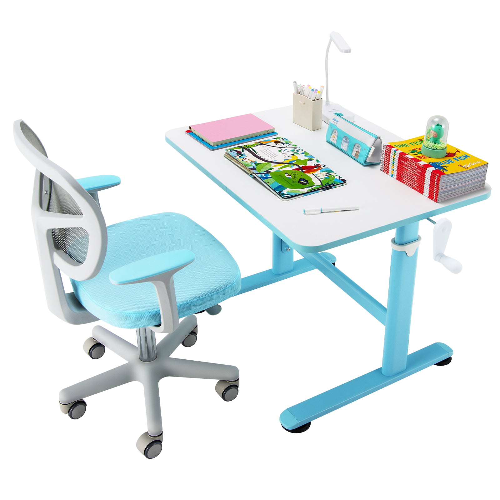 Infans Height Adjustable Kids Desk & Chair Set Study Desk Chair w/Sit-brake Caster Blue