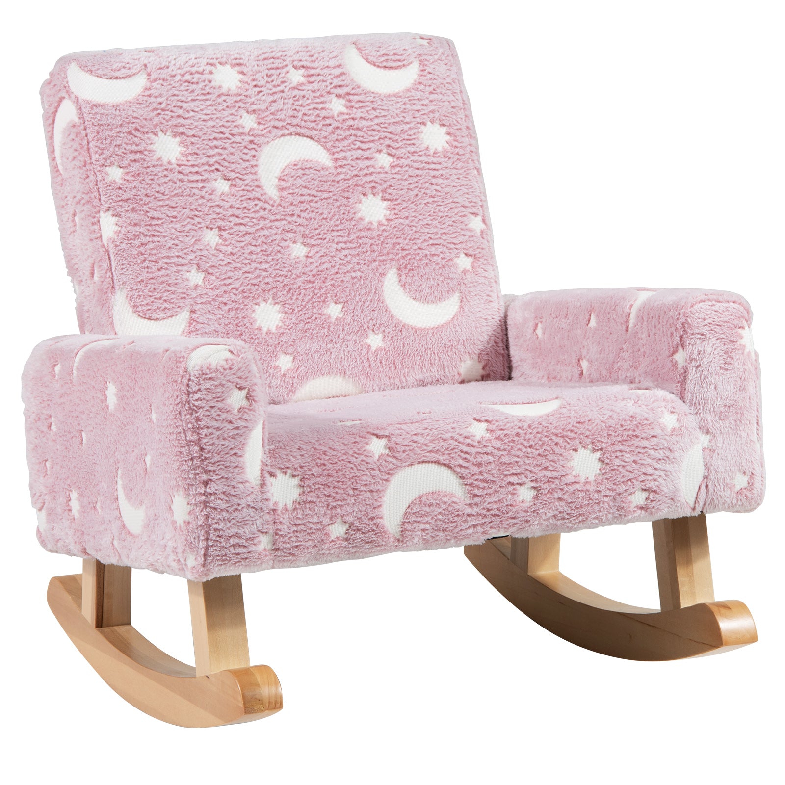 Infans Kids Rocking Chair Upholstered Flannel Children Rocker with Comfy BackrestPink