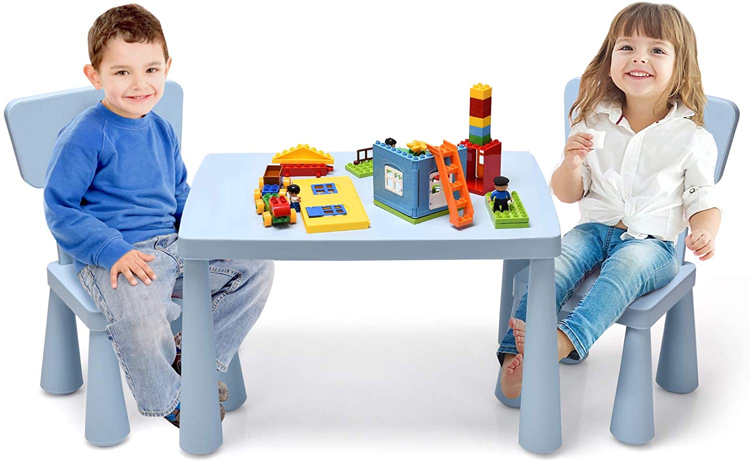 Infans Kids Table & 2 Chairs Set Toddler Activity Play Dining Study Desk Baby Gift Blue