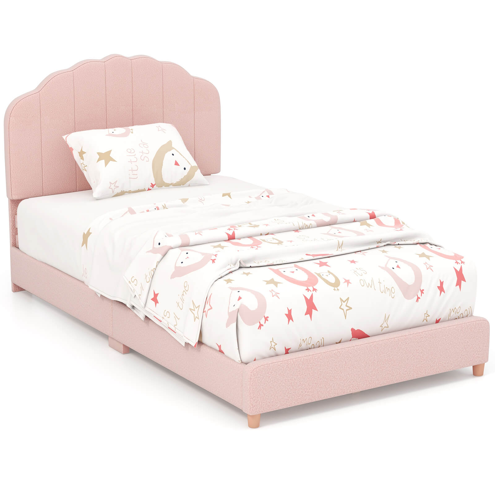 Infans Kids Twin Platform Bed Frame Upholstered Twin Size Bed w/ Wooden Slats SupportPink