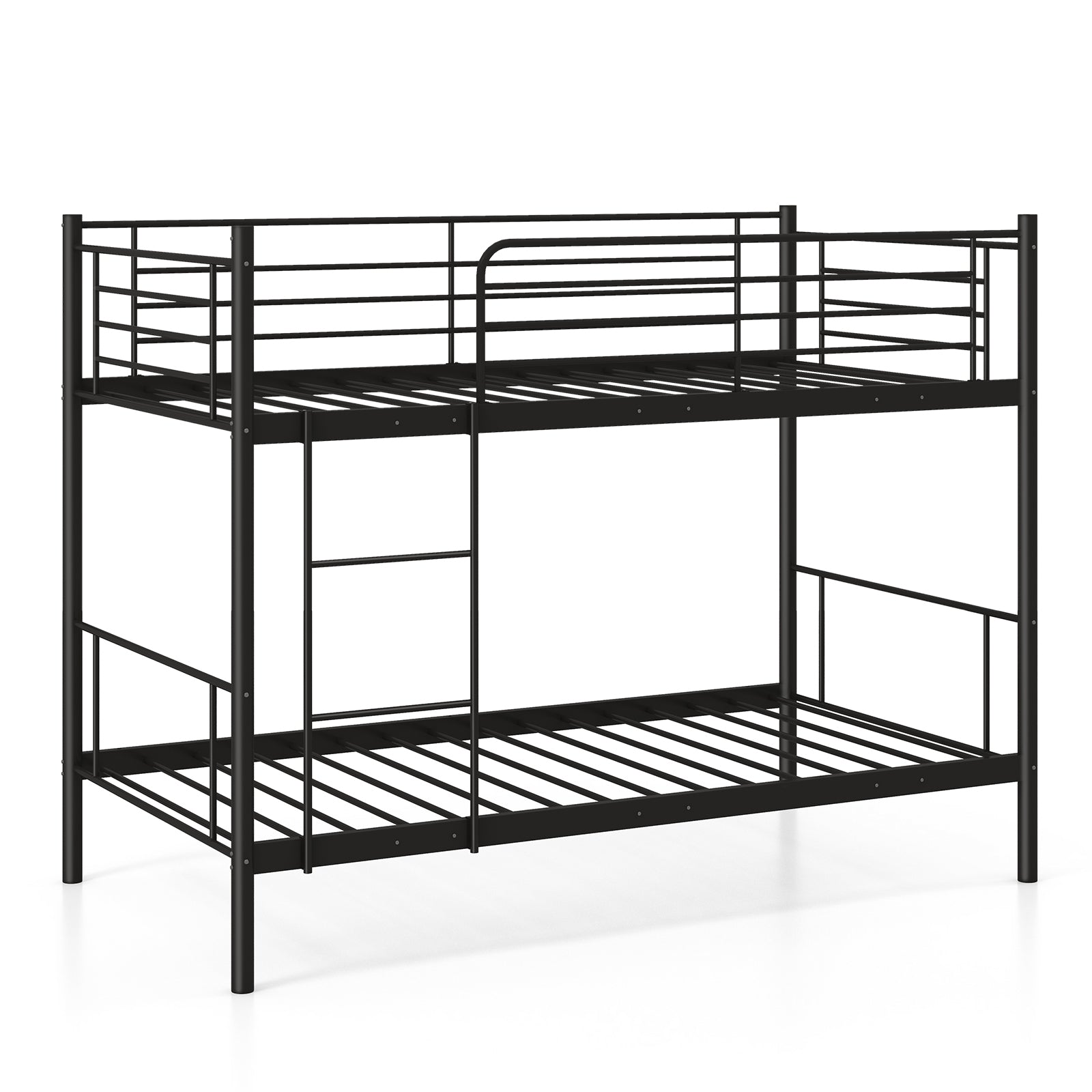 Infans Metal Twin Over Twin Bunk Bed with Built-in Ladder Safety Guardrail Black