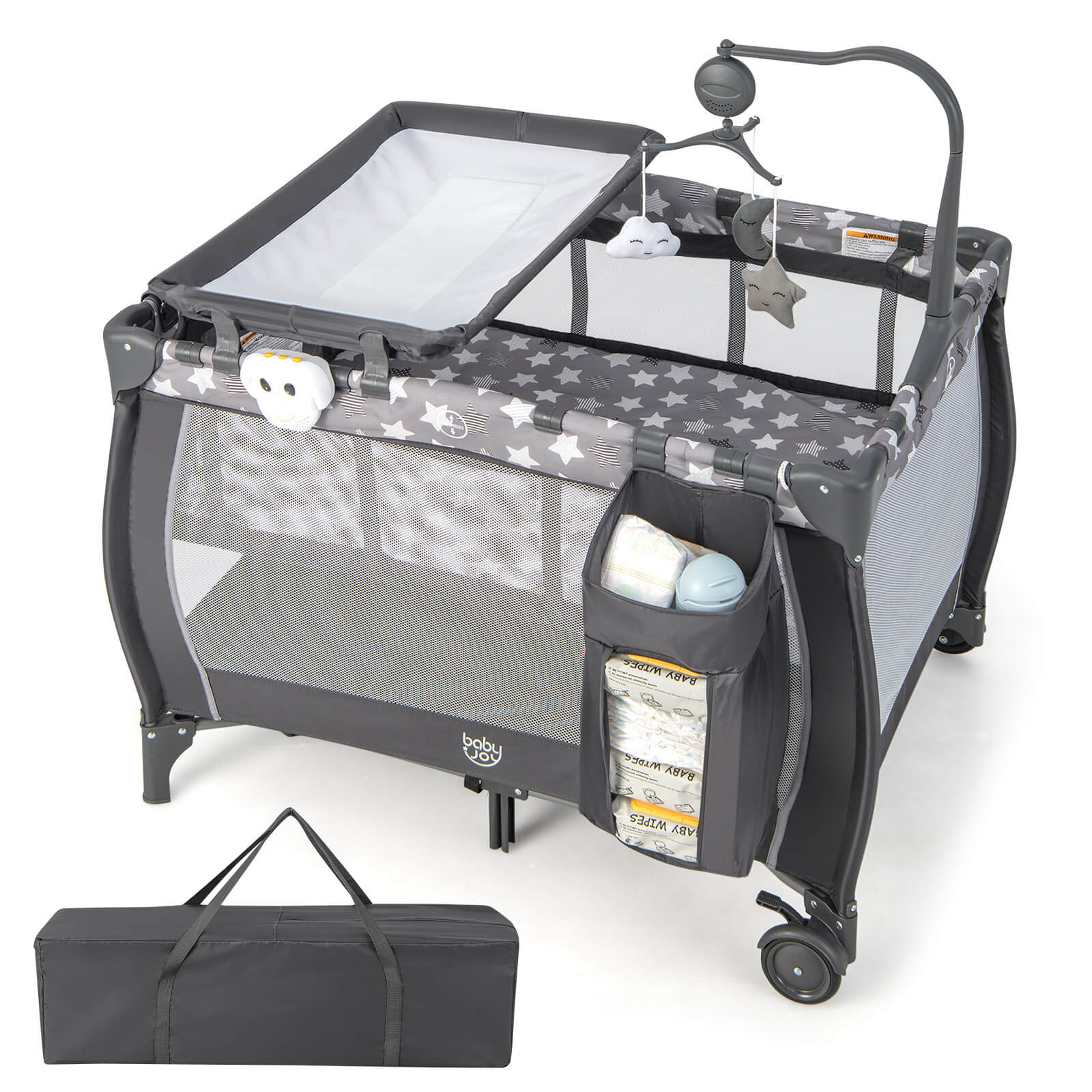 Infans Portable Baby Playard Nursery Center Crib Bassinet w/ Hanging Toys & Music Box