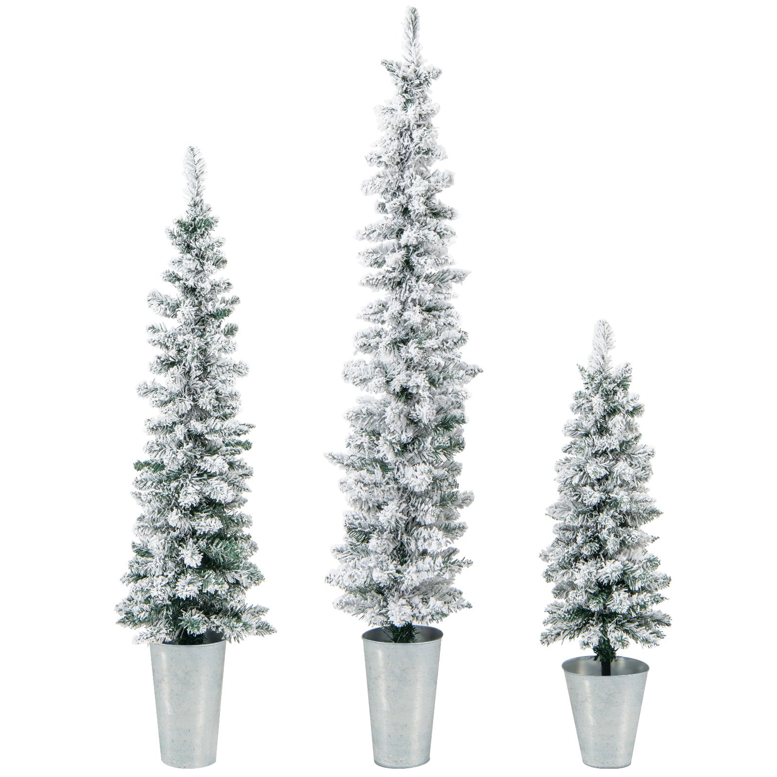Infans Potted Artificial Christmas Tree Set of 3 3/4/5 FT Snow-Flocked Slim Faux Trees