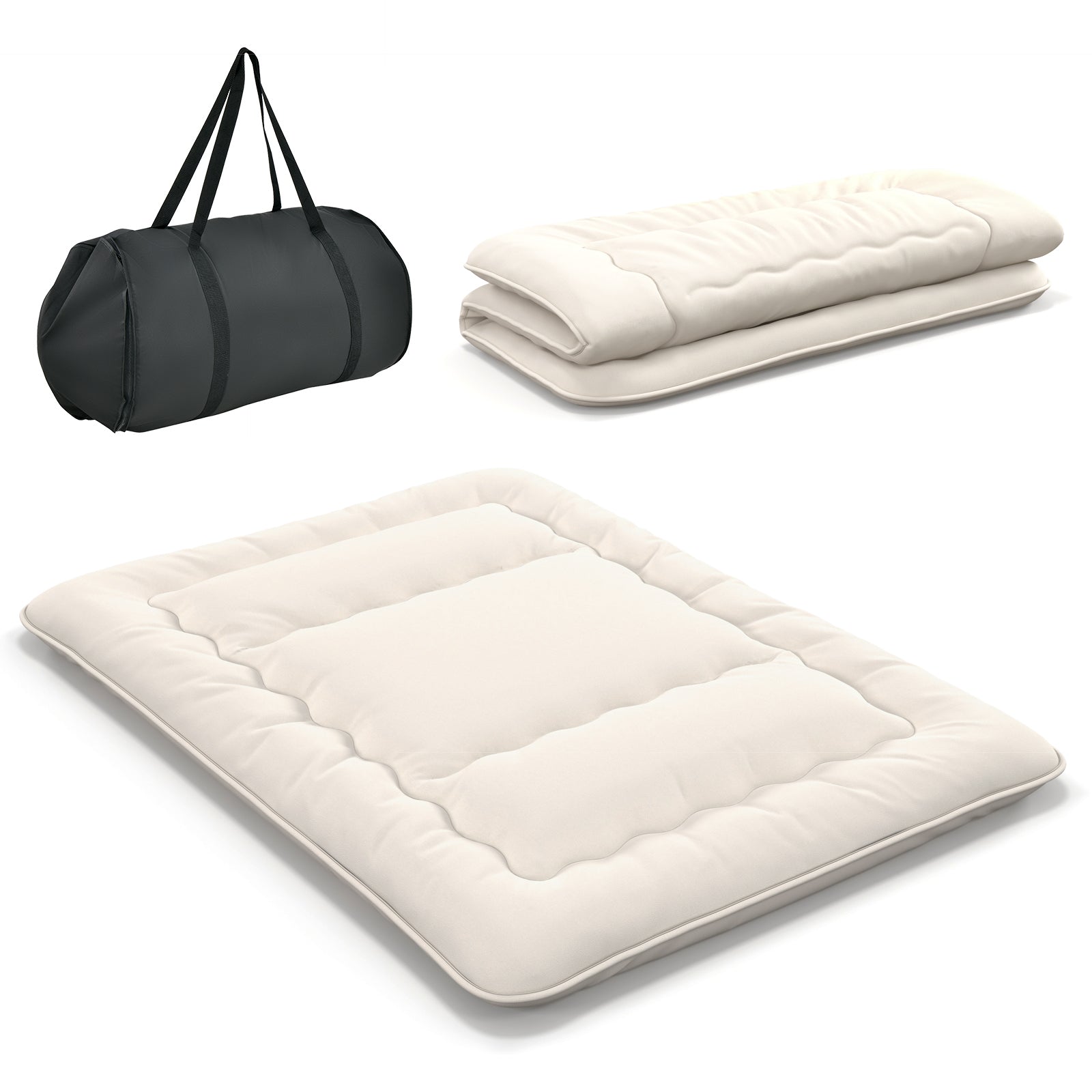 Infans Queen Futon Mattress Japanese Floor Sleeping Pad Washable Cover Carry Bag Beige