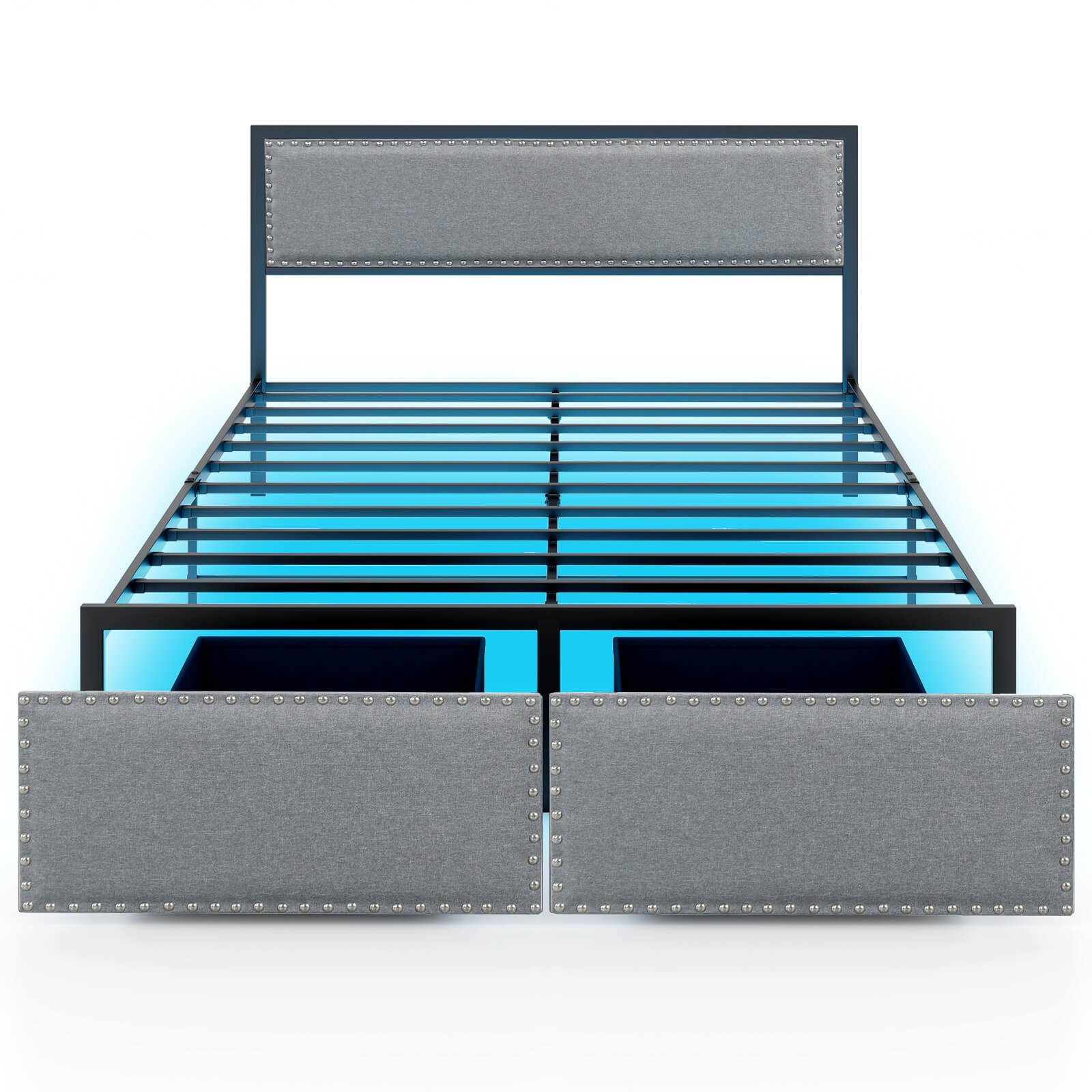 Infans Queen Size Bed Frame with 2 Storage Drawers LED Lights Slats Support Modern