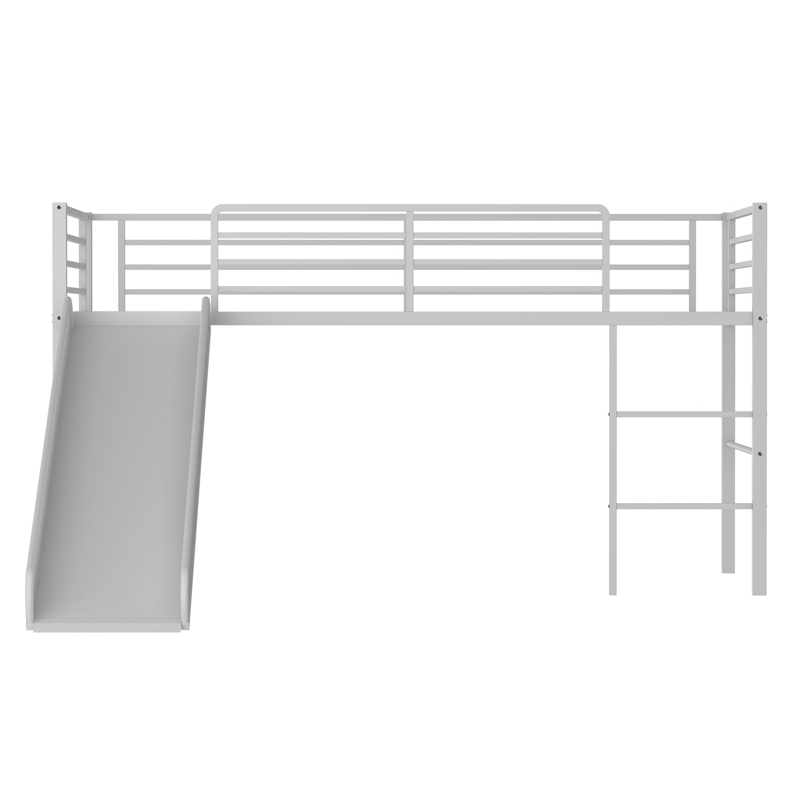 Infans Twin Metal Loft Bed with Slide Guardrails Built-in Ladder Low Bed Frame Silver