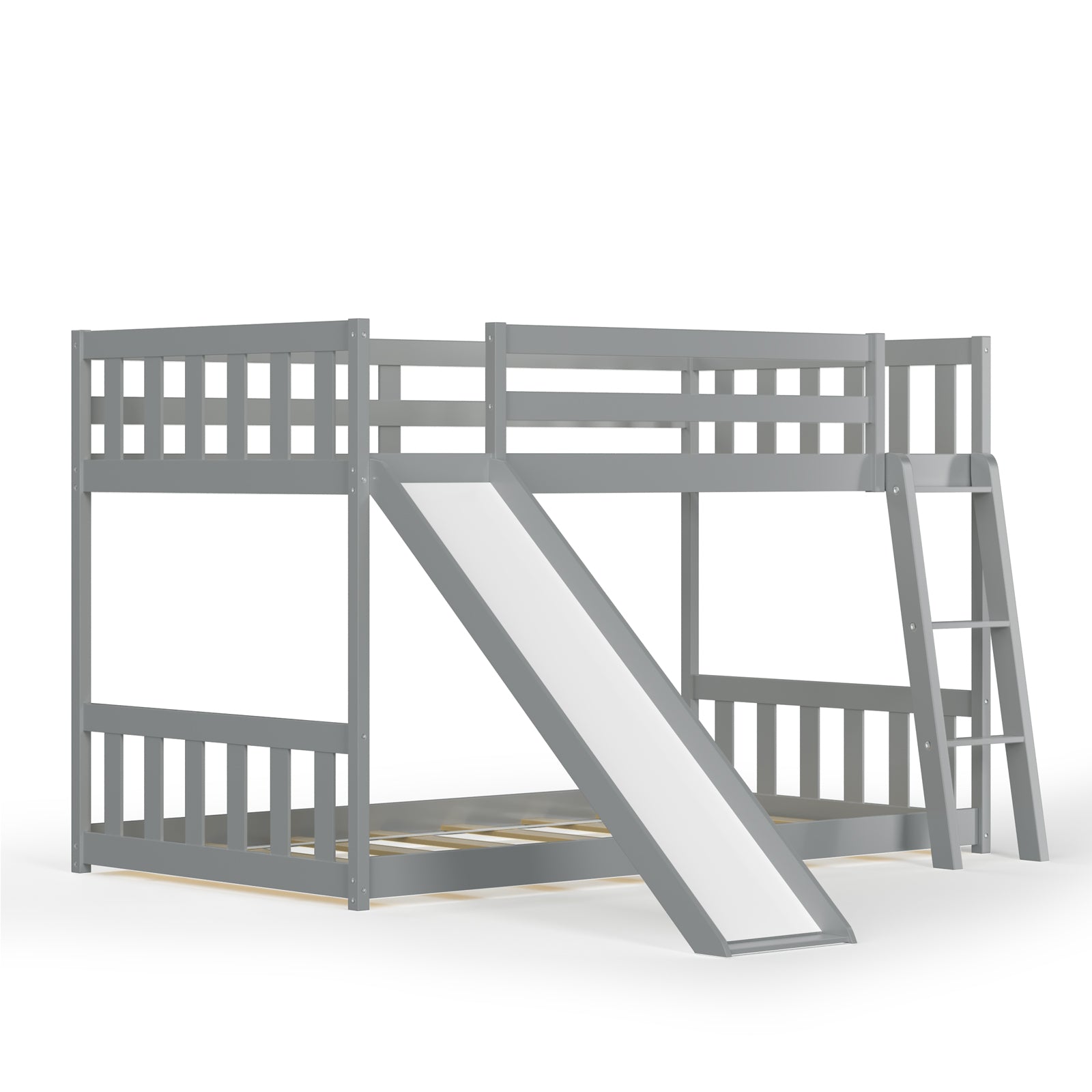 Infans Twin over Twin Bunk Wooden Low Bed with Slide Ladder for Kids Grey