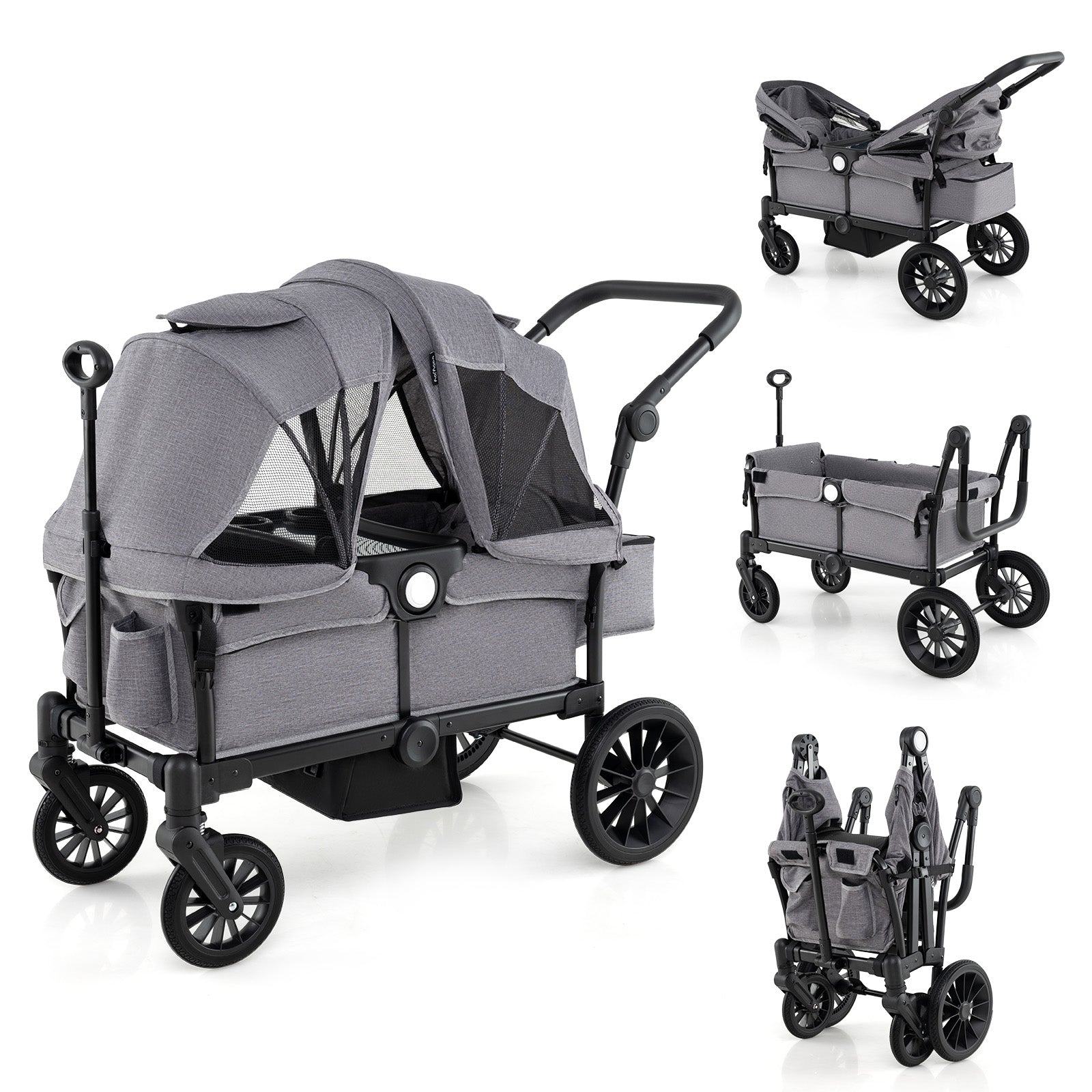 Infans Wagon Stroller for 2 Kids Push Pull Double Stroller with Adjustable HandleGrey